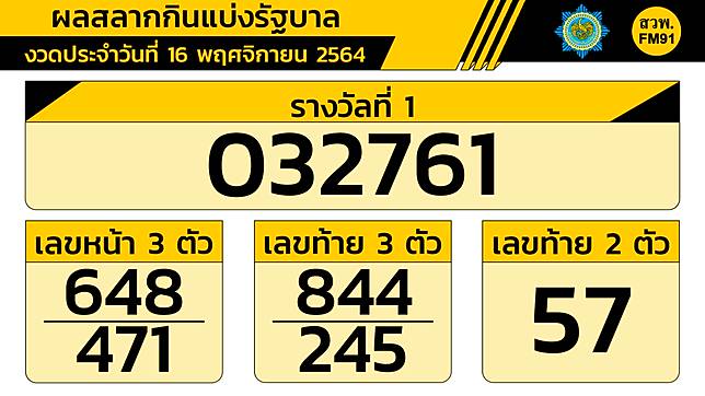 ตรวจหวย งวดวนท 16 พฤศจกายน 2564 ลาสด โดยการออกสลากกนแบงรฐบาล ออกเวลา 1430 น. เลขทาย 3 ตว 978 723. วนศกรท 19 พฤศจกายน 2564 วนลอยกระทง.